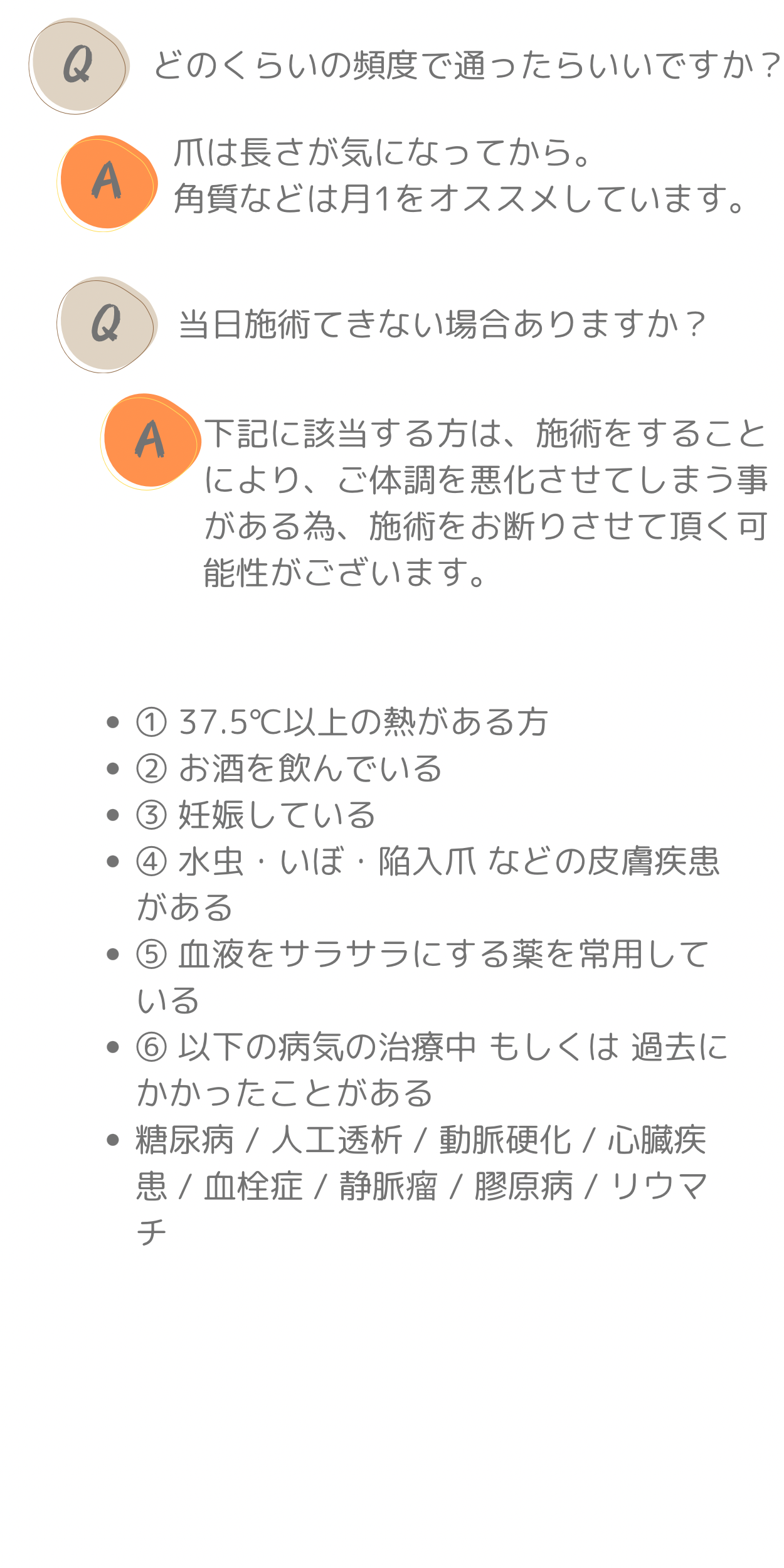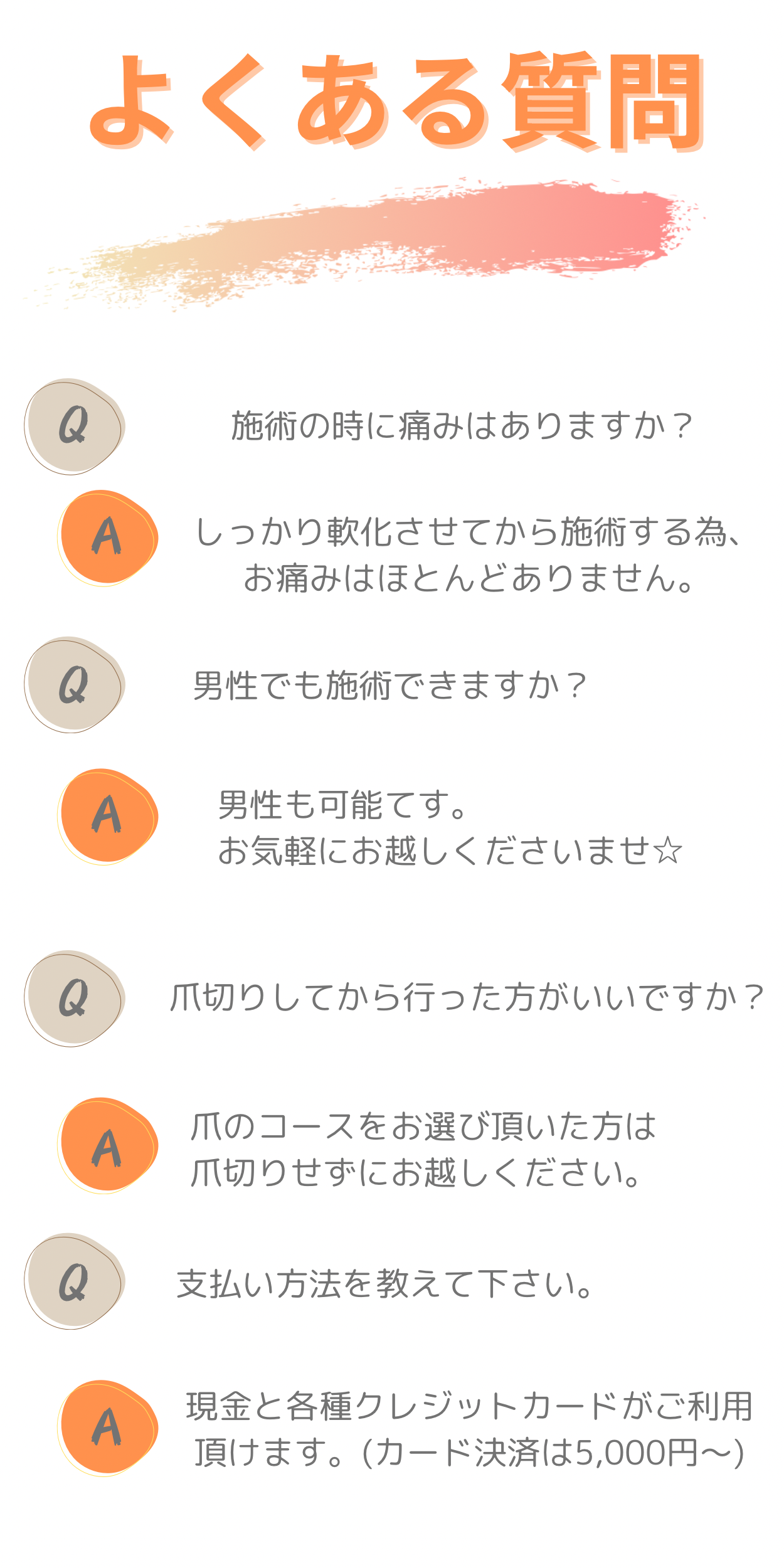 <上手く爪が切れない><爪のゴミが溜まって取れない>爪が分厚くなってしまっている> そんなお困りの方へ足爪トラブル特化★※爪は切らずに自爪の状態でご来店ください。